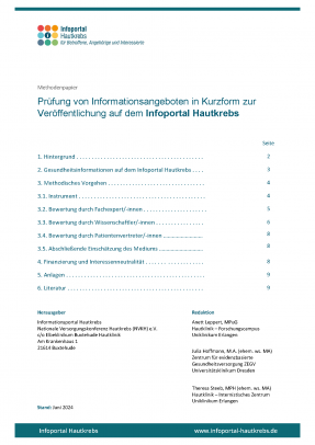 Durch die Bereitstellung aktueller und wissenschaftlich geprüfter Informationen leistet das Infoportal Hautkrebs einen wichtigen Beitrag zur Stärkung der Patientenorientierung. Wir möchten Personen, die von Hautkrebs betroffen sind, bei der eigenständigen Informationssuche unterstützen und ihnen die Auseinandersetzung mit ihrer Erkrankung erleichtern.